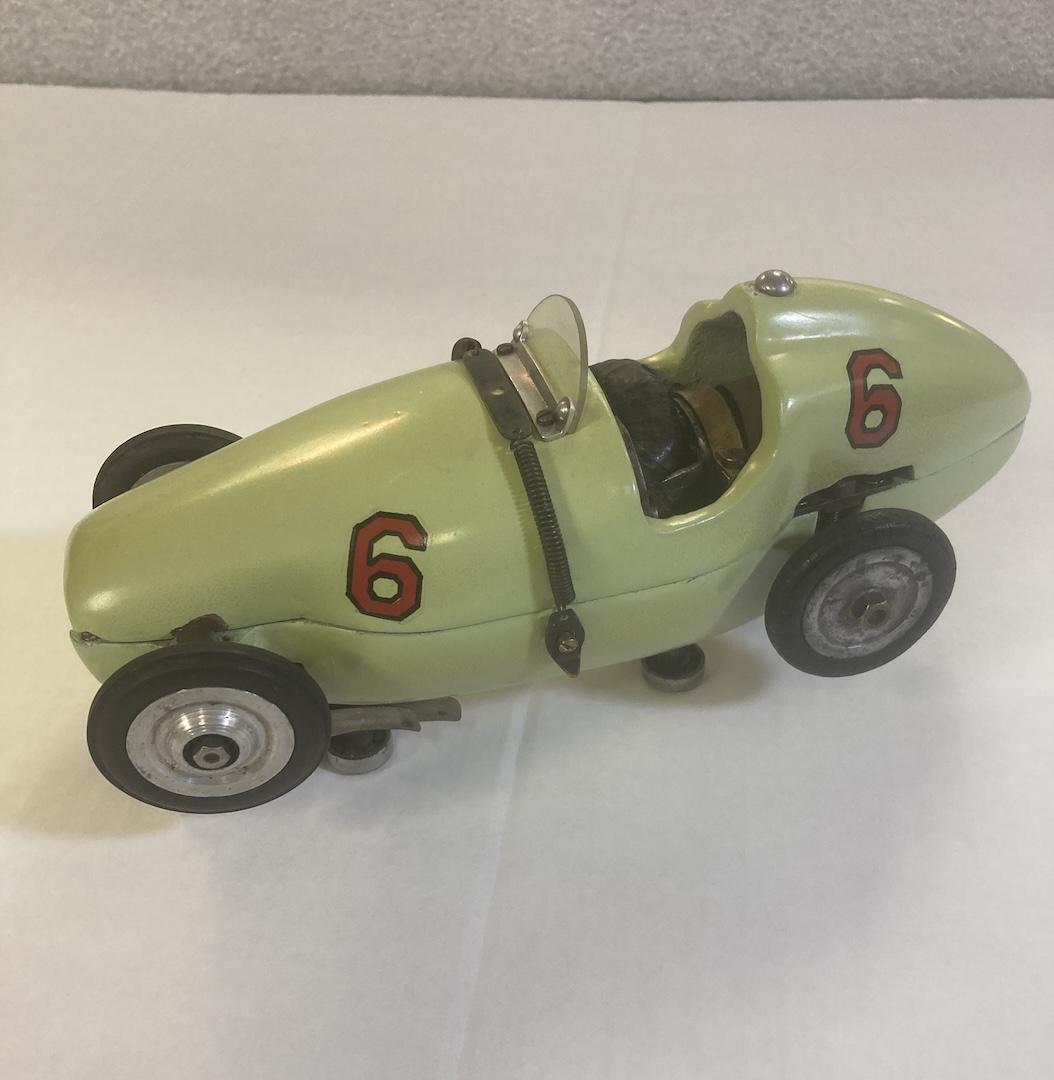 I currently have around 8000 cars & around 1,000 sets. My favorite cars & sets are those made between 1905 & 1960. These were the early days when it had not been decided what scale was best or which system was better suited. It was also the least documented & misunderstood period of toy electric race car production. Most people believe slot cars started in 1957 with Scalextric & VIP, but there is a rich history of almost continual production & experiment in electric race & roadway sets from 1905 to 1957 from all over the world. We know of at least 15 manufacturers of electric race & roadway sets up to 1956 & there are rumors of others we haven't documented. This is not including experimental cars & sets made before 1956 which are numerous.